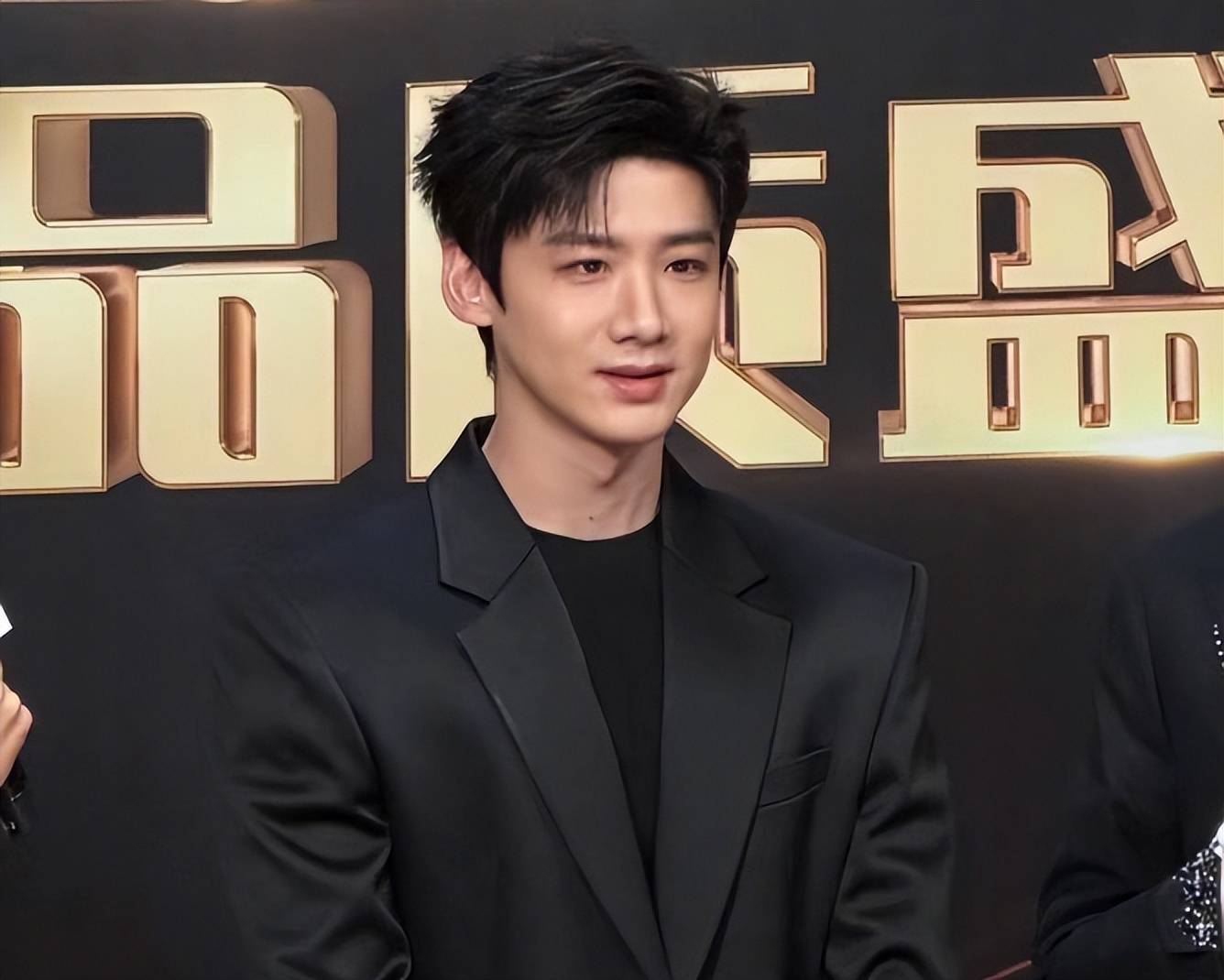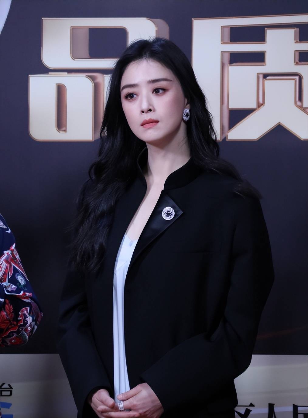 一身黑色西装看着很有气场,唯独缺少一些资深演员的底气。